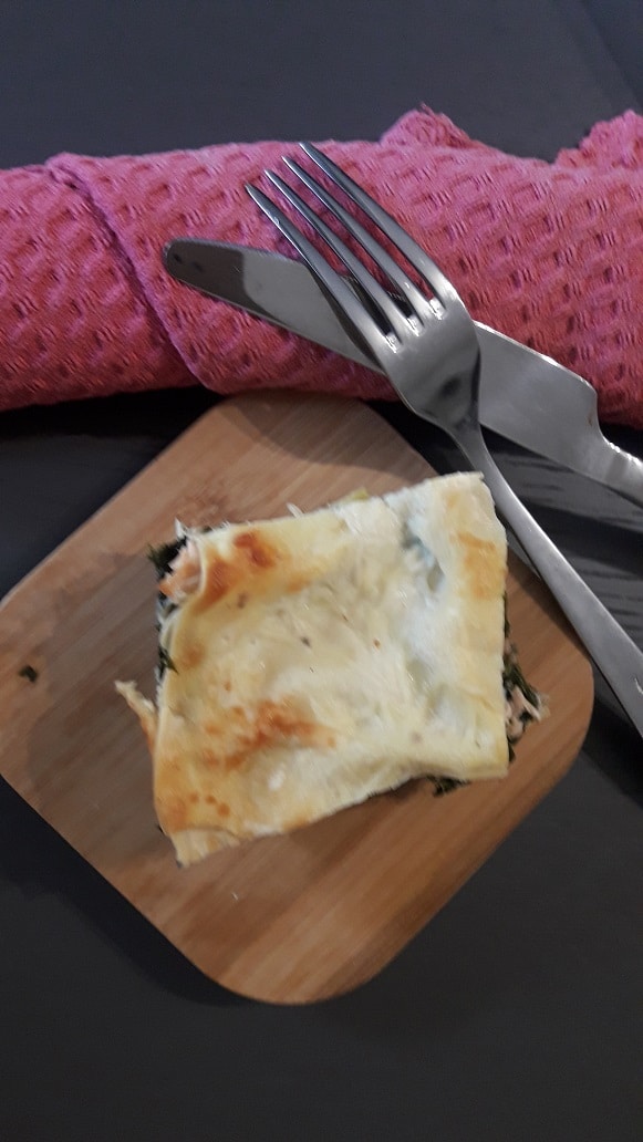Huiler puis déposer une couche de lasagne au fond du plat. Recouvrir d'épinard puis de saumon puis un peu de béchamel et ainsi de suite. Terminer par la lasagne, béchamel et une fine couche de fromage râpé.